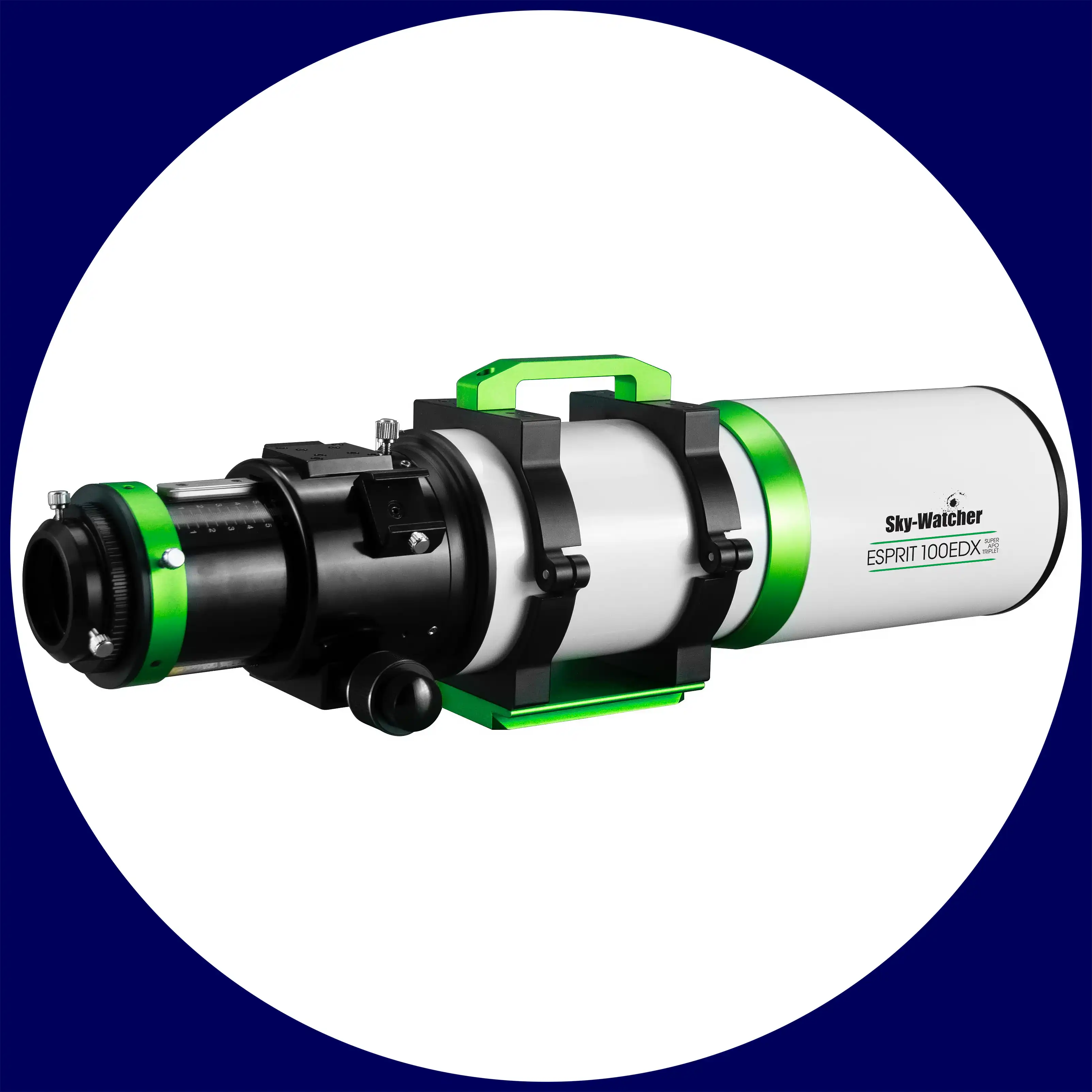 Der Sky-Watcher ESPRIT 100EDX verfügt über einen soliden, CNC-gefrästen Linear-Power-Fokussierer mit zwei Geschwindigkeiten, hoher Belastbarkeit und ohne Bildverschiebung, mit einem 3-Zoll-Index-Auszugrohr.