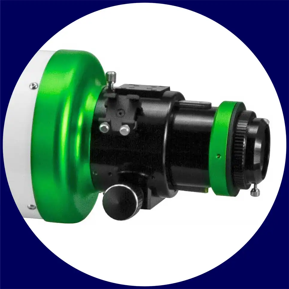 Das ESPRIT 150EDX Teleskop verfügt über ein verbessertes Okularauszugs-Design, bei dem das Capstan-Rad des Vorgängermodells entfällt, sodass sich der Fokussierer leichter drehen lässt. Zusätzlich ist am Auszugrohr ein drehbarer Adapter angebracht, der Ihnen den Kamera-Rotationswinkel weiter erleichtert.