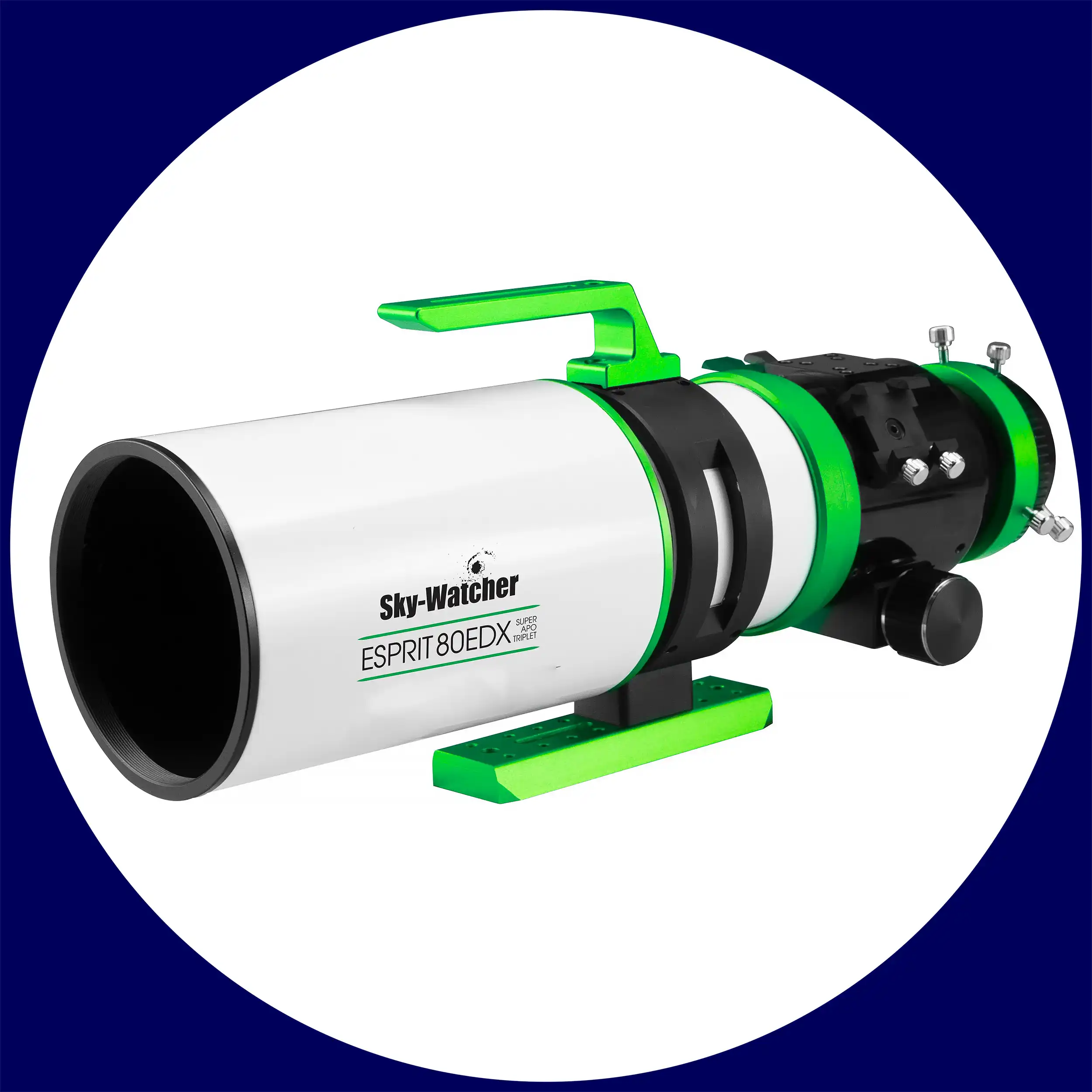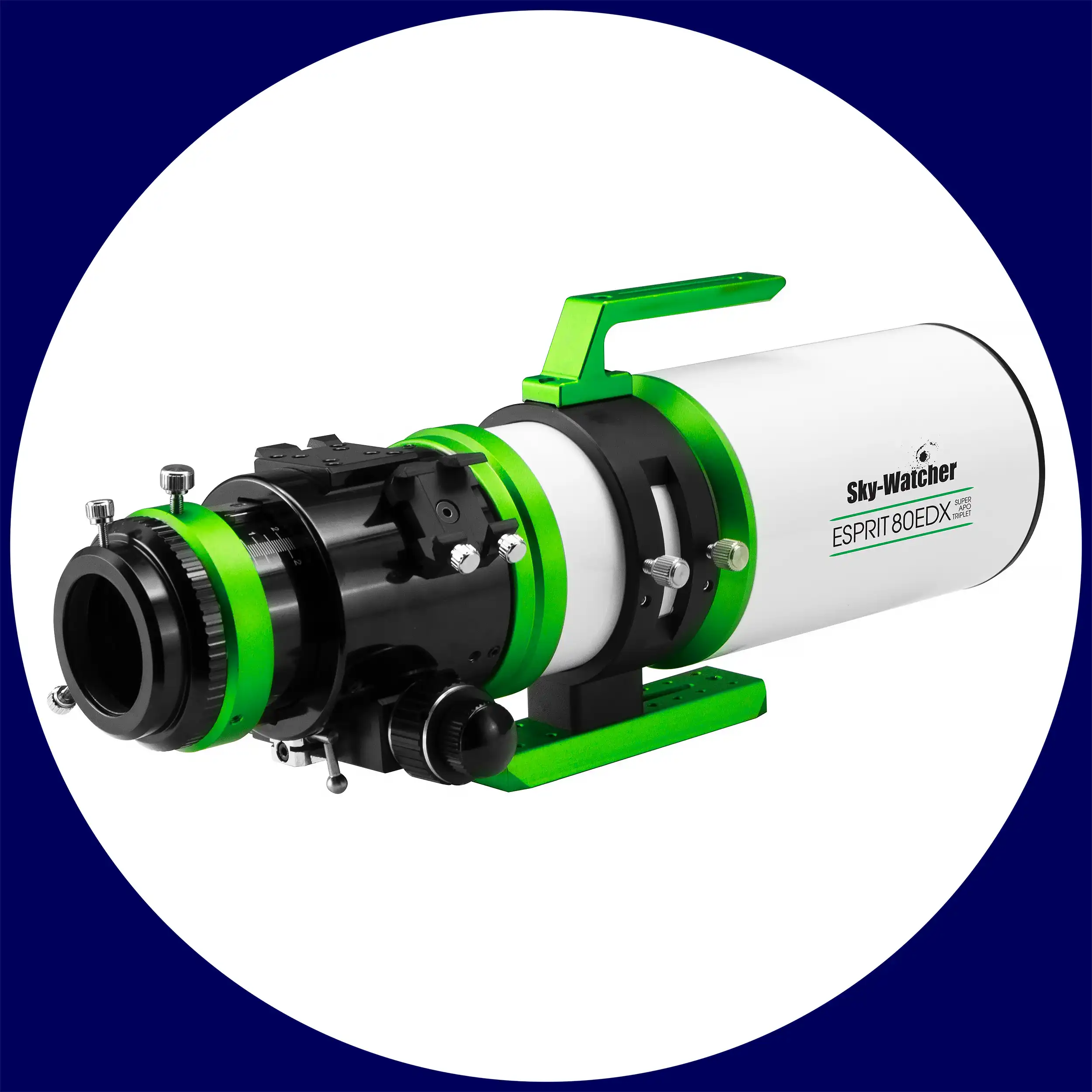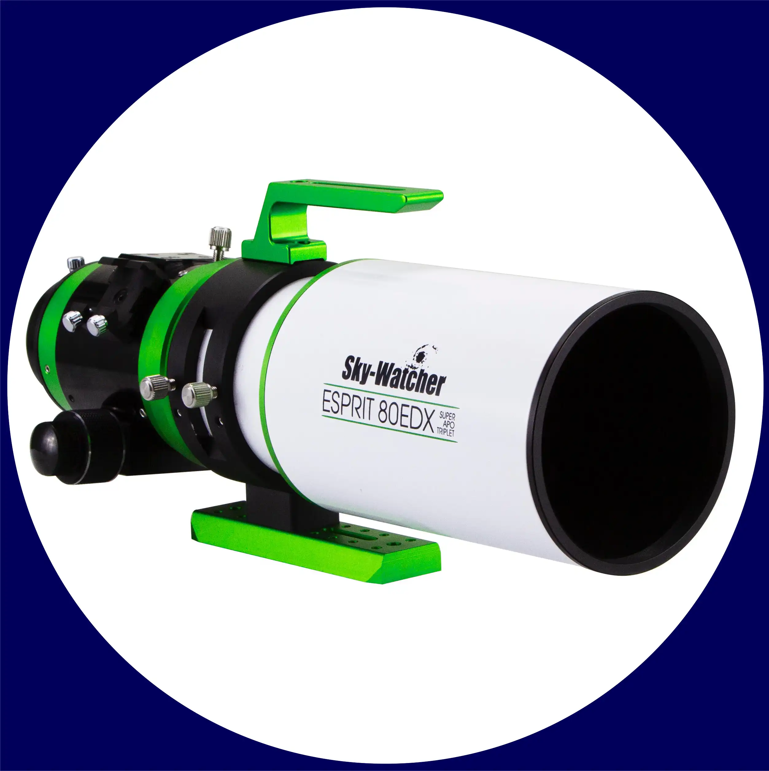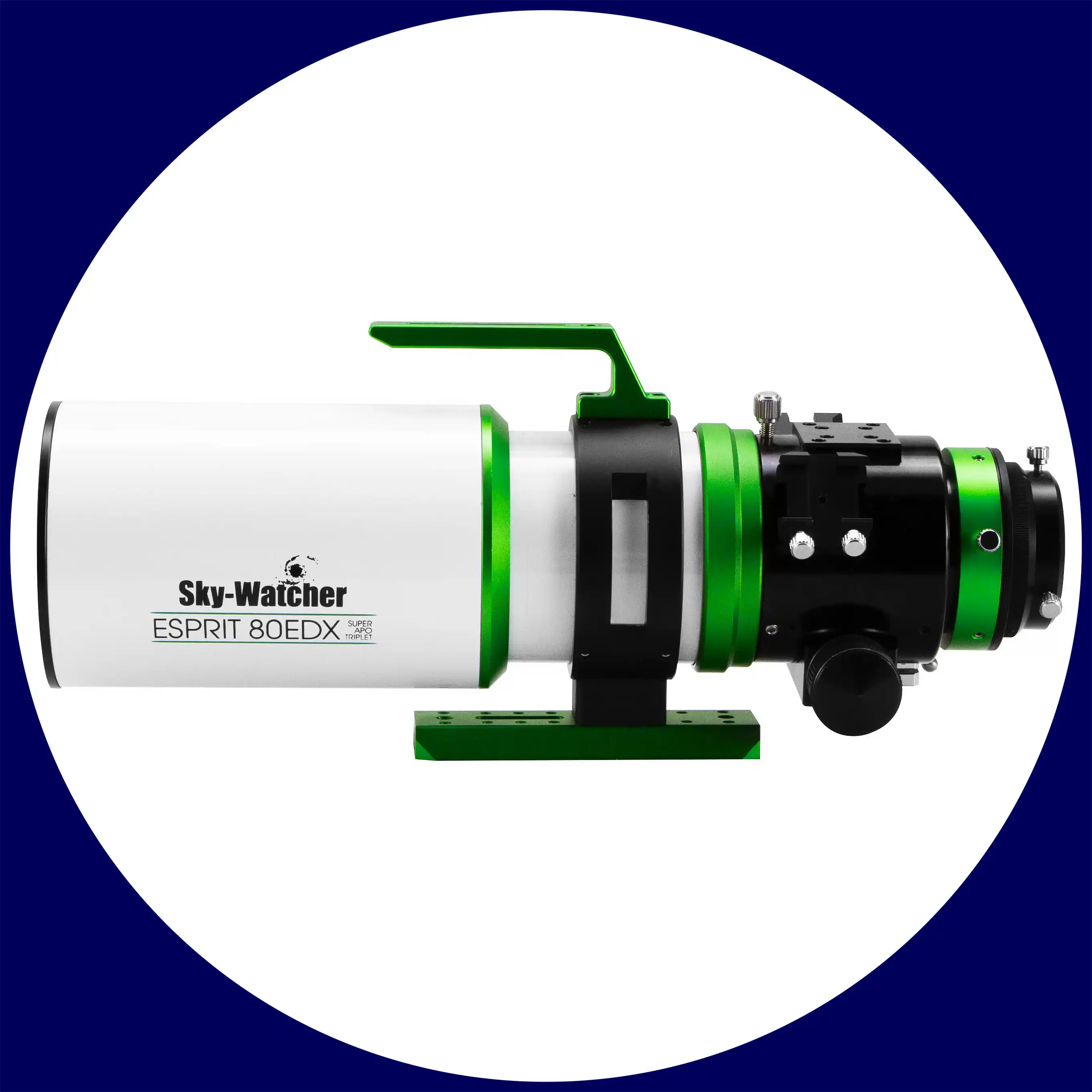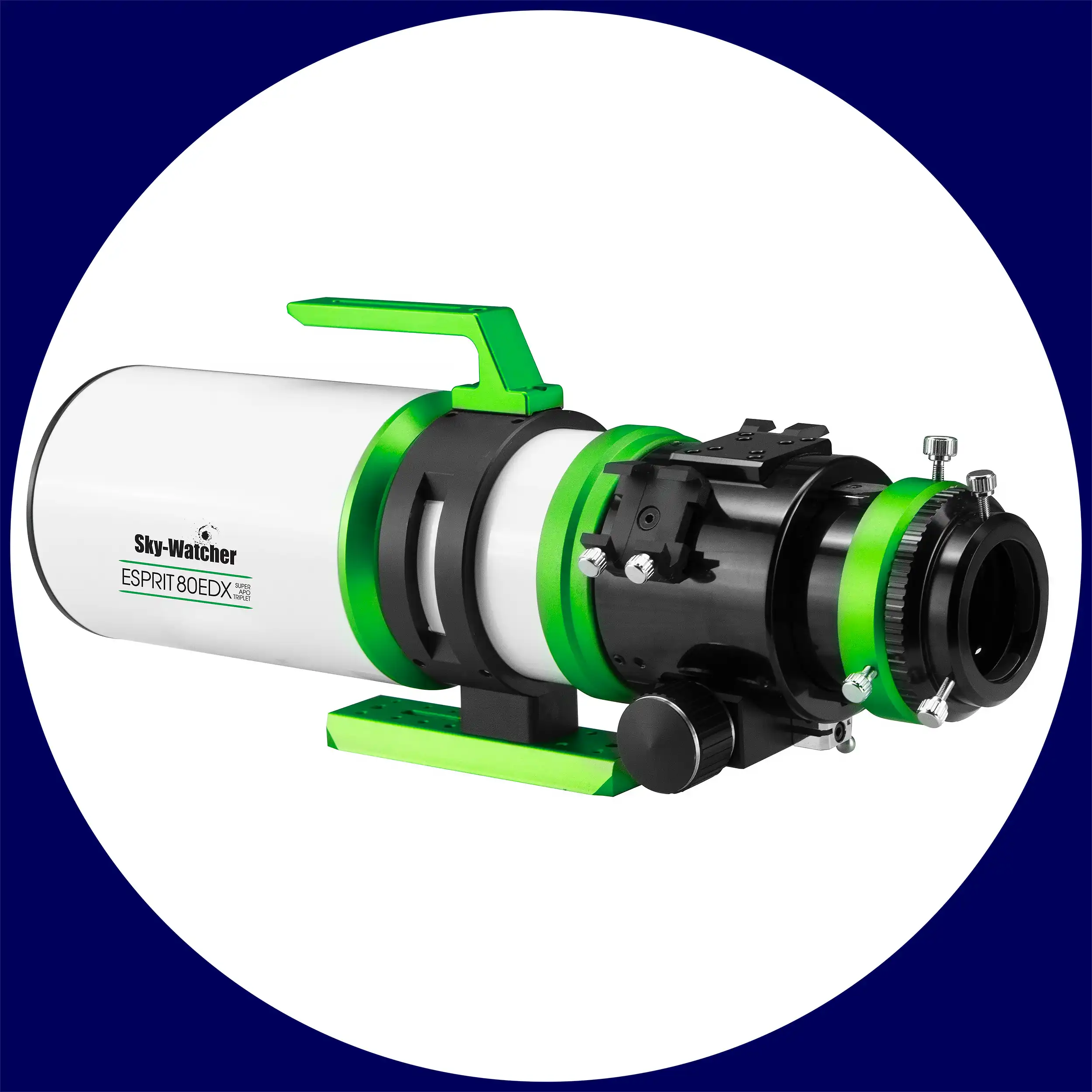 Das neue Sky-Watcher Modell ESPRIT-80EDX ist besonders kompakt, aber mit voller Leistung ausgestattet. Es verfügt über ein außergewöhnliches f/5 optisches System mit einer Premium-Linse aus japanischem Ohara-FPL-53-ED Glas.