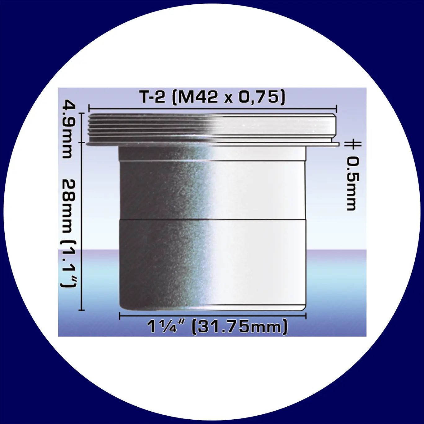 Sie können auch eine T2-2-Zoll Hülse aufschrauben und haben somit einen 2-Zoll Okularanschluß.