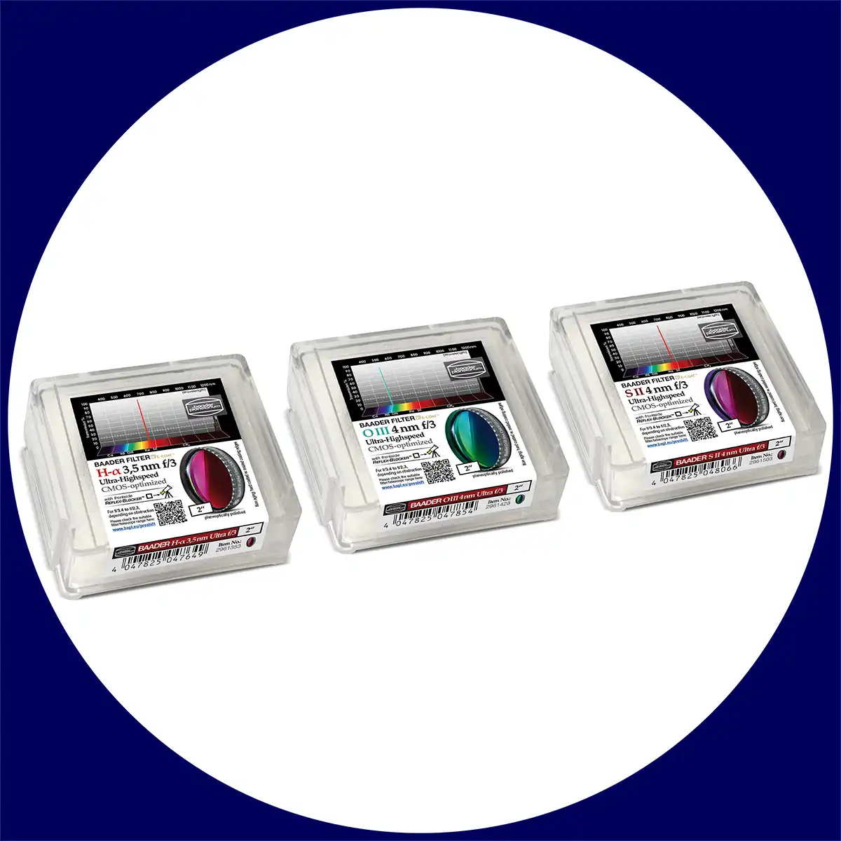 Baader 3.5nm H-alpha / 4nm O-III / 4nm S-II Ultra-Schmalband (Narrowband) f/3 Highspeed Filtersatz 2" - CMOS optimiert