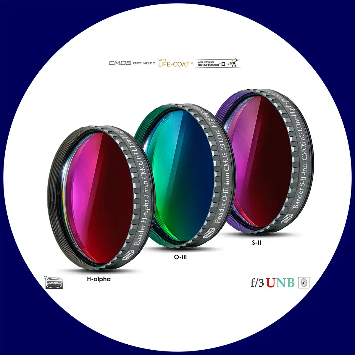 - Baader 3.5nm H-alpha / 4nm O-III / 4nm S-II Ultra-Schmalband (Narrowband) f/3 Highspeed Filtersatz 2" - CMOS optimiert