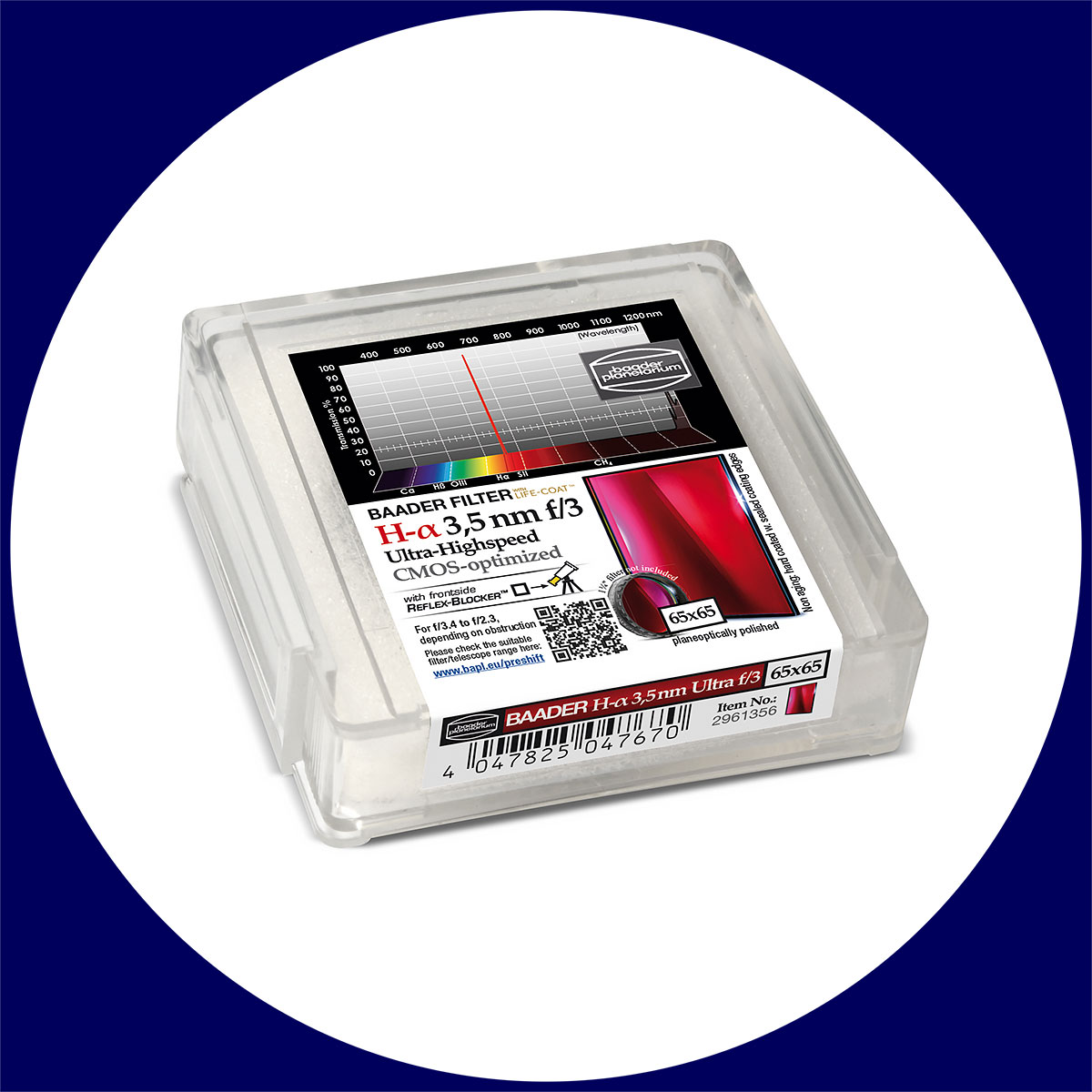 - Baader H-alpha 3.5nm Ultra-Schmalband (Narrowband) f/3 Highspeed Filter 65x65mm - CMOS optimiert