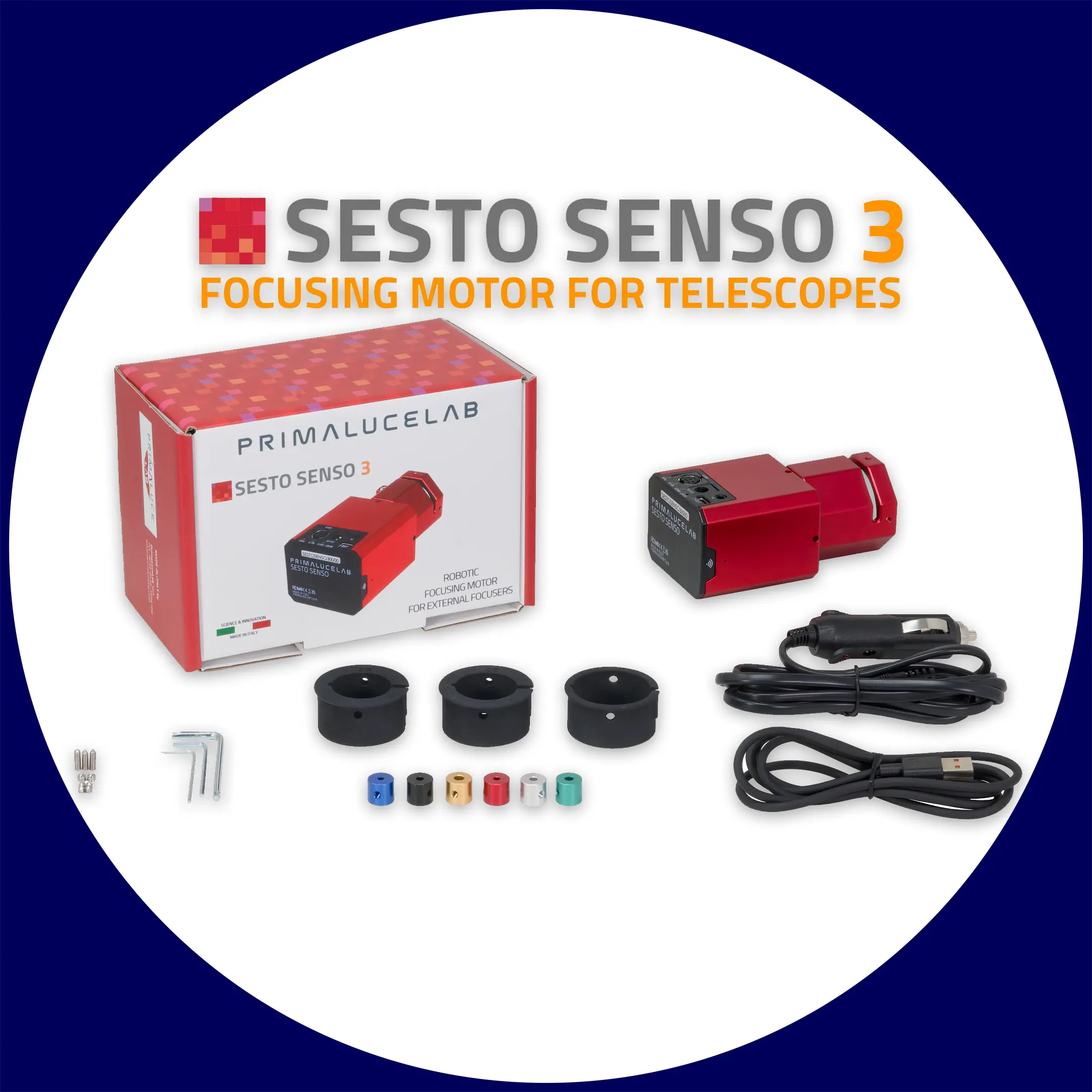 PrimaLuceLab präsentiert den SESTO SENSO 3 - er ist der fortschrittlichste Roboter-Fokussiermotor für Zahnstangen- oder Crayford-Fokussierer, der hohe Präzision, Flexibilität und Benutzerfreundlichkeit in einem kompakten Design vereint. Er wurde in Italien von der Edelschmiede PrimaLuceLab entwickelt und hergestellt und verfügt über wichtige Innovationen wie den integrierten Positionsgeber, der eine manuelle Bewegung des Fokussierers ohne Verlust der Motorposition mit der Option „Automatic Position Recovery” ermöglicht, sowie die neue selbstzentrierende Klemme 2 (SCC2) für die schnelle Installation an vielen Fokussierern ohne externe Halterungen oder Adapter.