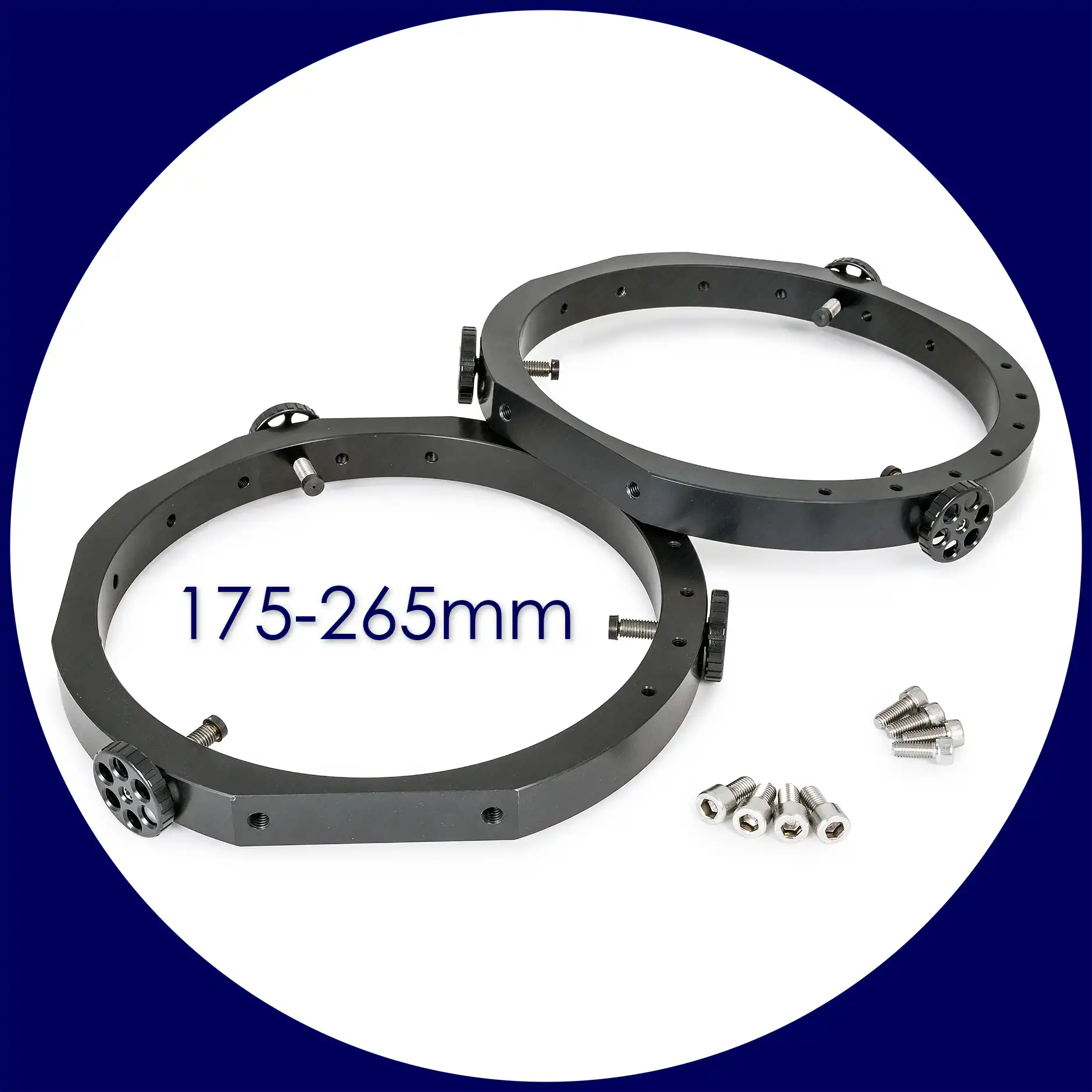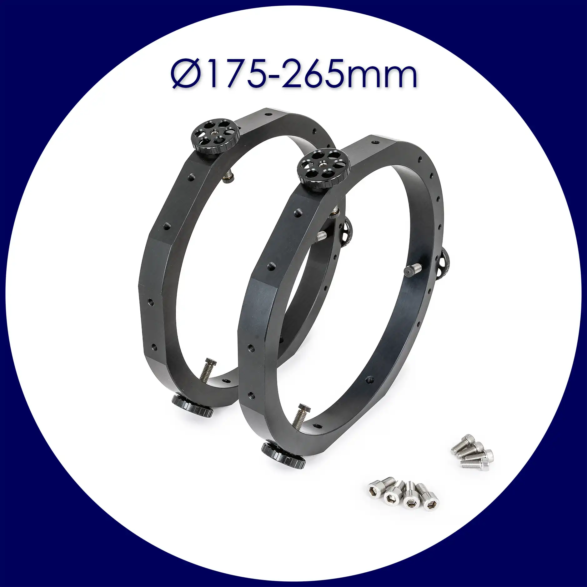 - Benötigt Leitrohrschellen Innenringset (BP#1500510) für große Refraktoren (effektiver Klemmbereich 205-265mm) – wird auf Anfrage produziert, wir benötigen hierzu den genauen Tubusdurchmesser Ihrer Optik