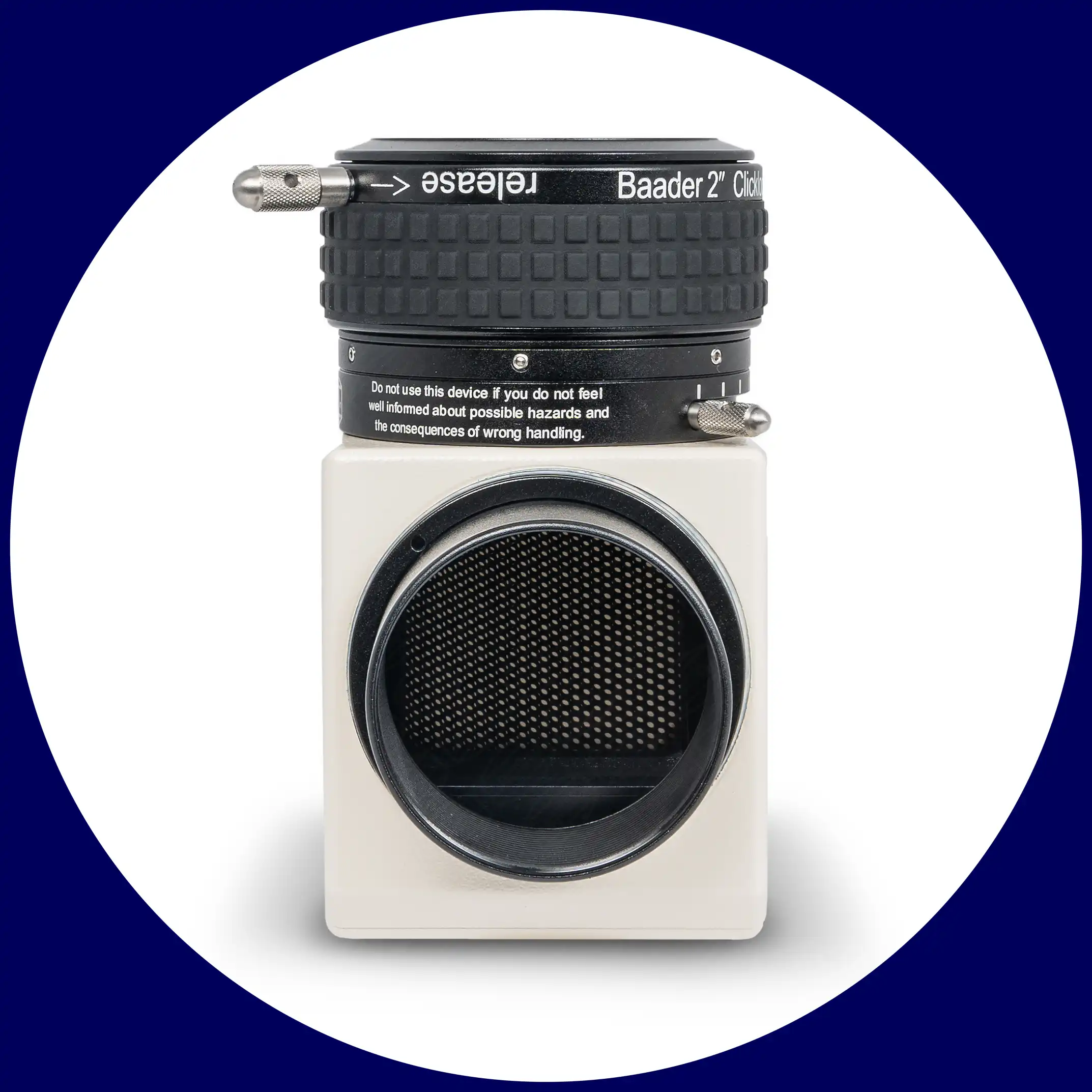 Die Filter werden dabei immer in die Filterschublade geschraubt, die durch abschrauben der 2" ClickLock Okularklemme sichtbar wird.