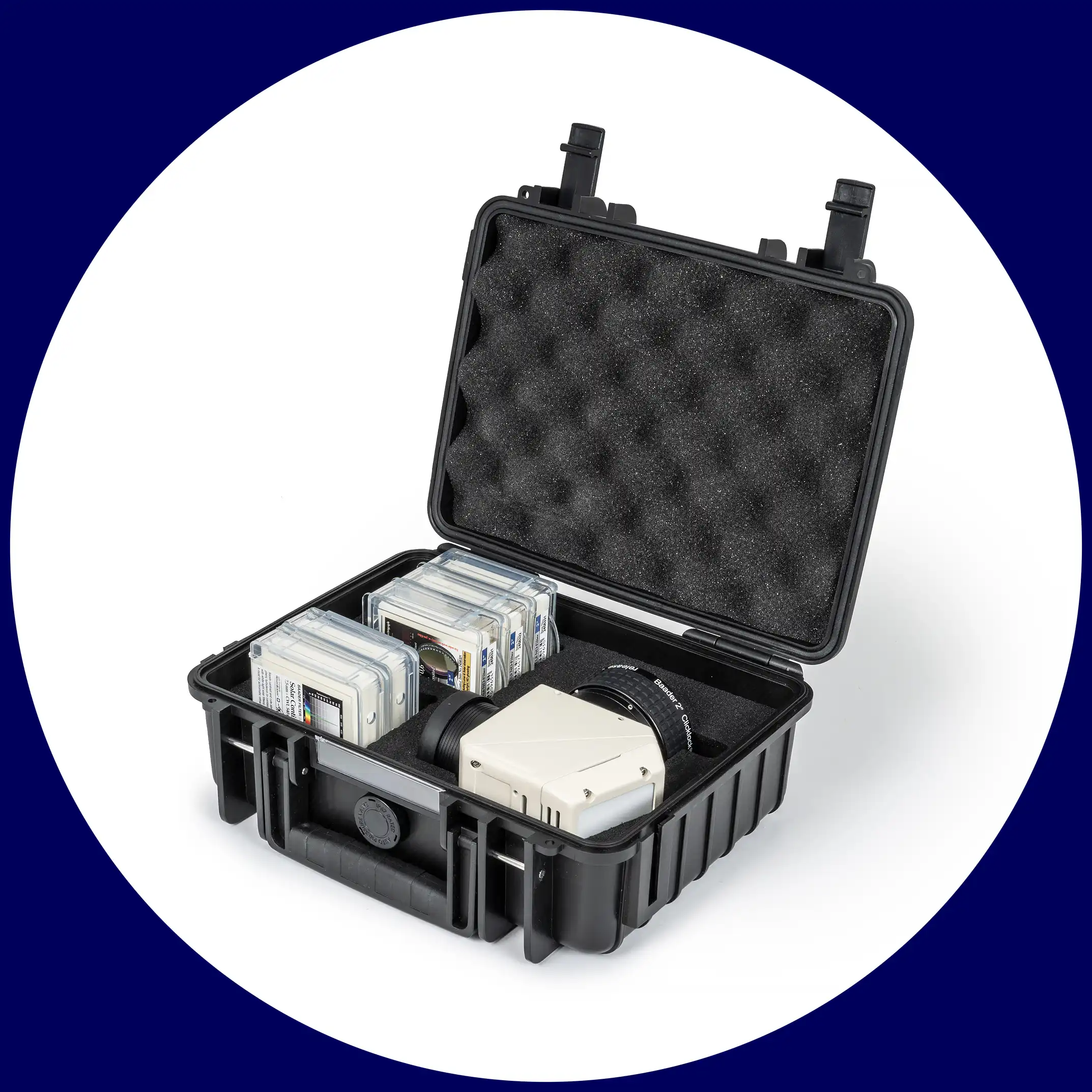 An den drehbaren Filterhalter werden alle nötigen Filter fest im Gehäuse verbaut - keine Gefahr beim Okularwechsel! - Anpassung der Helligkeit für Fotografie