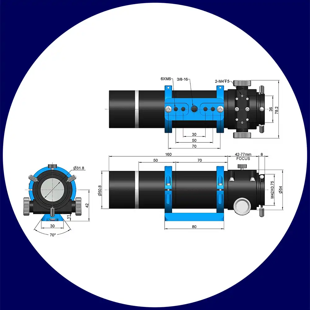Die wunderschöne, blaue, ToupTek Eloxierung rundet das Design ab und bringt Eleganz in Ihren Teleskop-Aufbau.