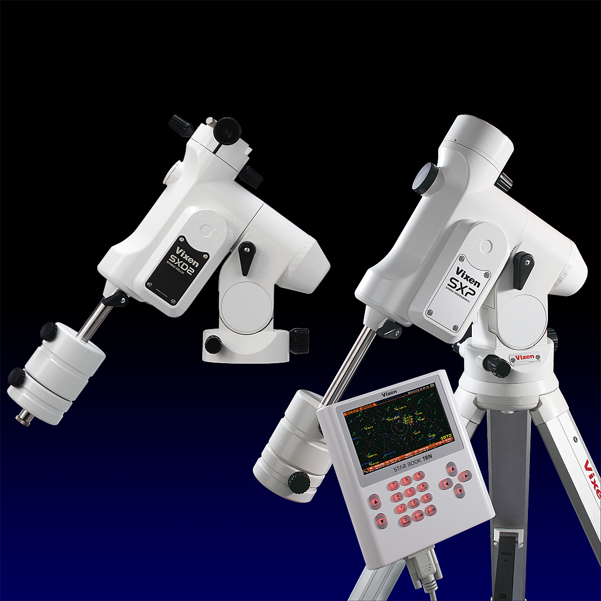 A GoTo equatorial mount equipped with the unique celestial navigation system "STAR BOOK TEN" controller which allows automatic slewing and tracking of the mount with button operation on a large color LCD display.